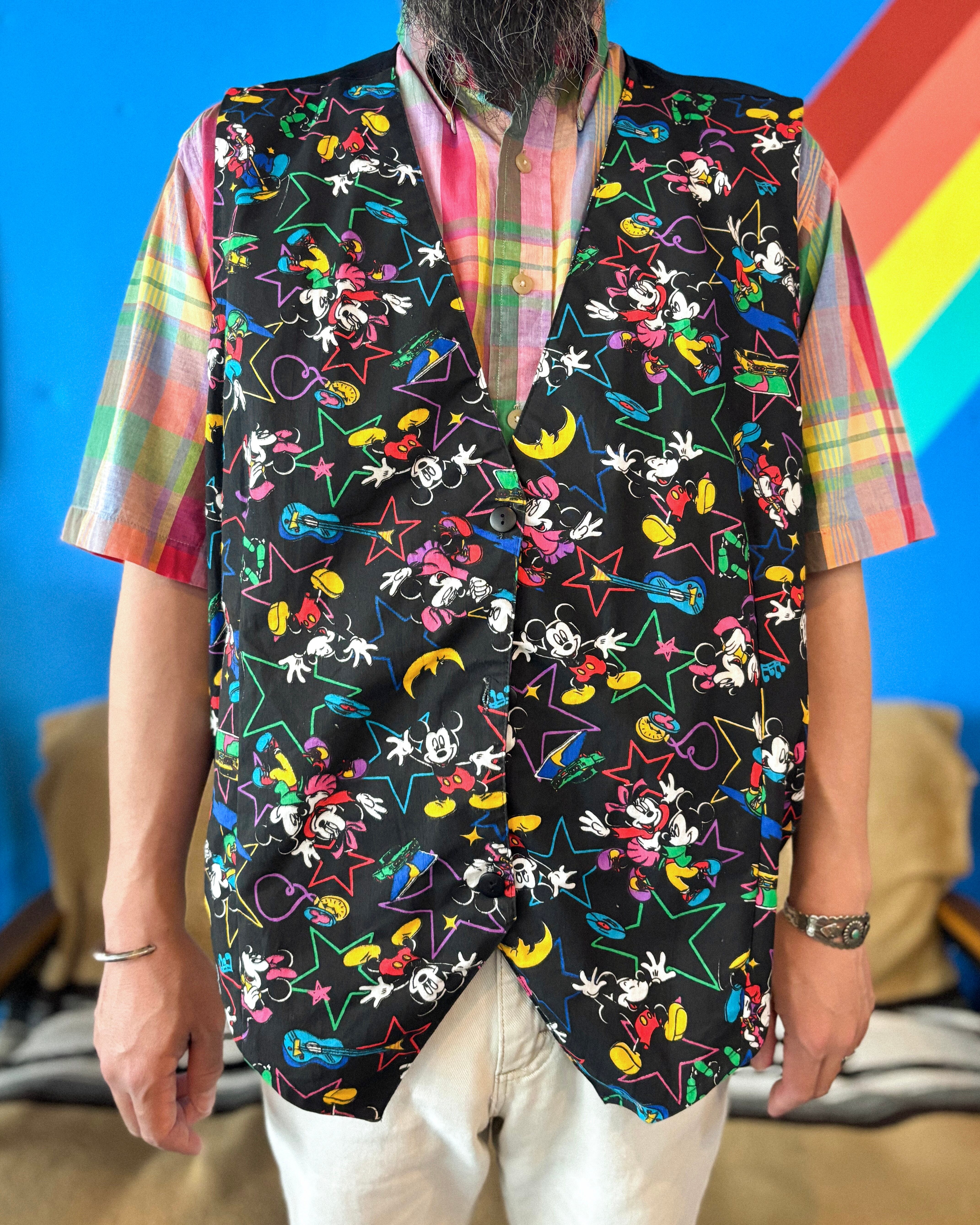 【Men's】 90s ミッキー ミニー イラスト ベスト / Made In USA ジレ ディズニー Mickey Minnie 古着 disney アメリカ製