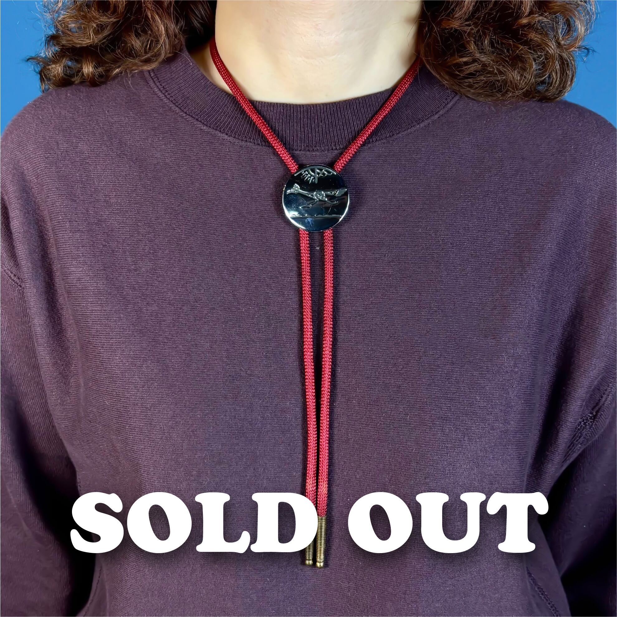 【Unisex】 鳥 モチーフ レッド ヒモ ループタイ / ボウタイ ネックレス 古着 アクセサリー バード