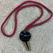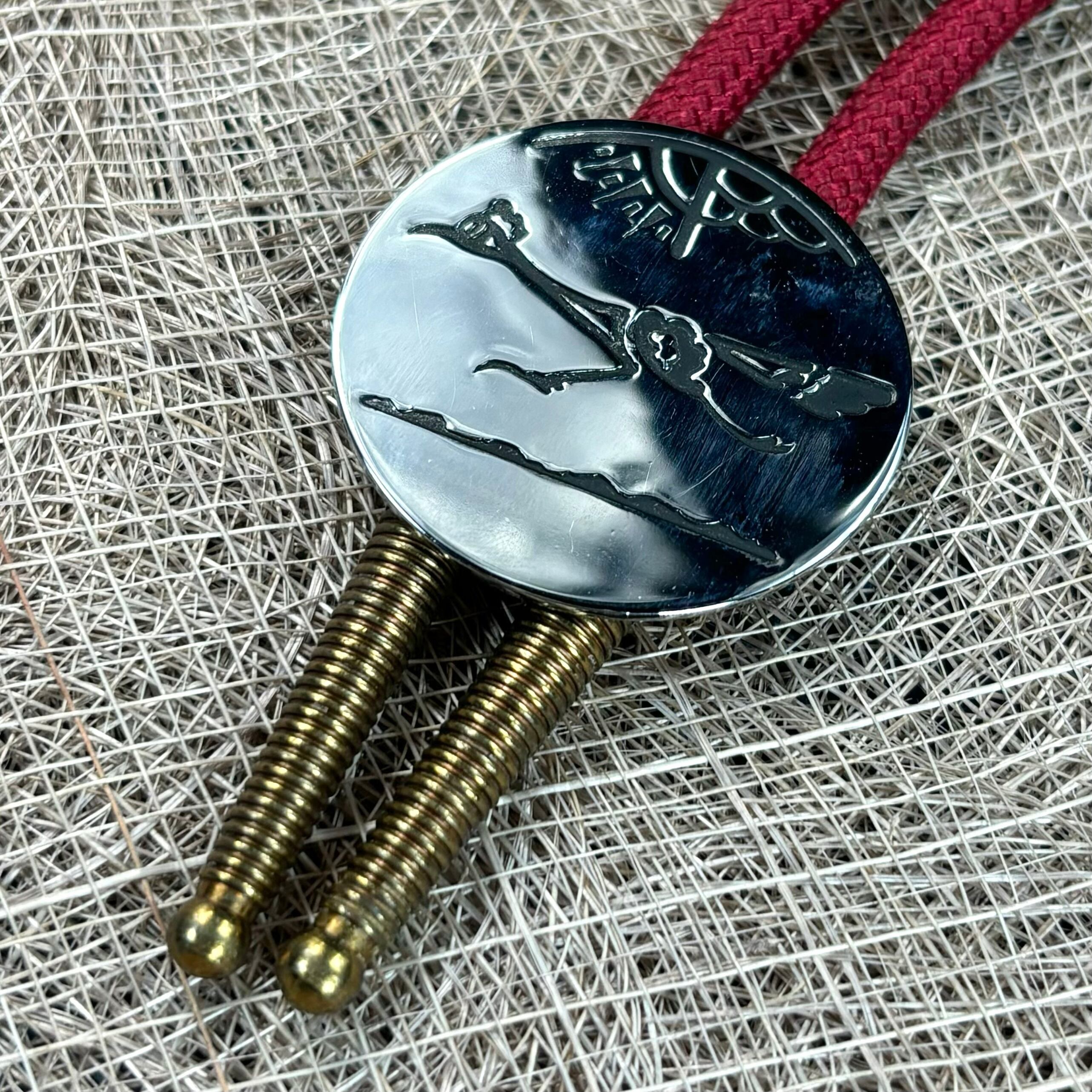 鮮やかなレッドカラーの紐に鳥モチーフがとっても魅力的なループタイです。