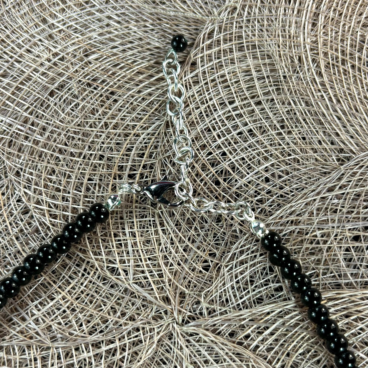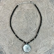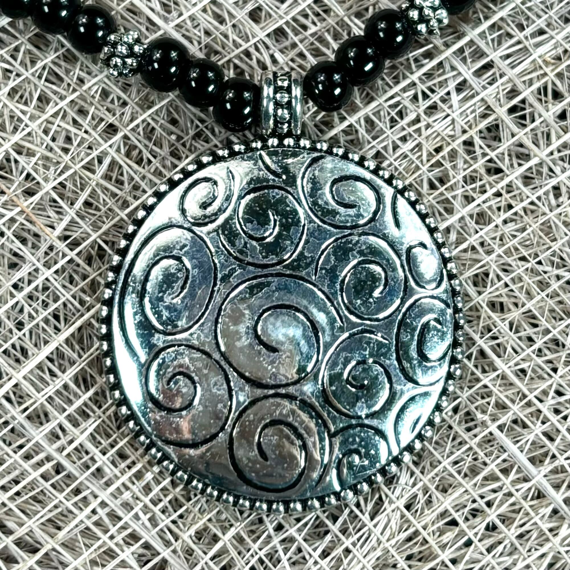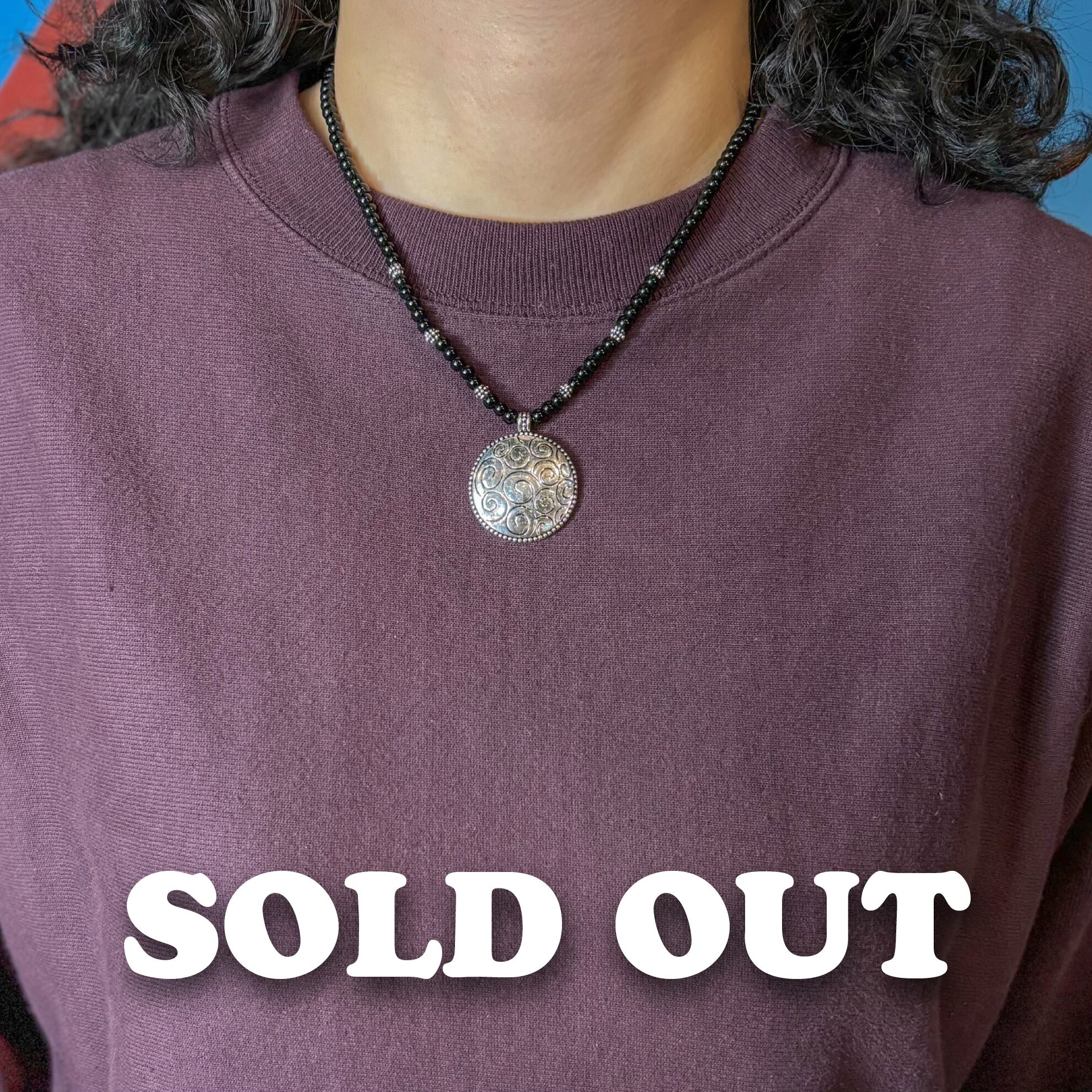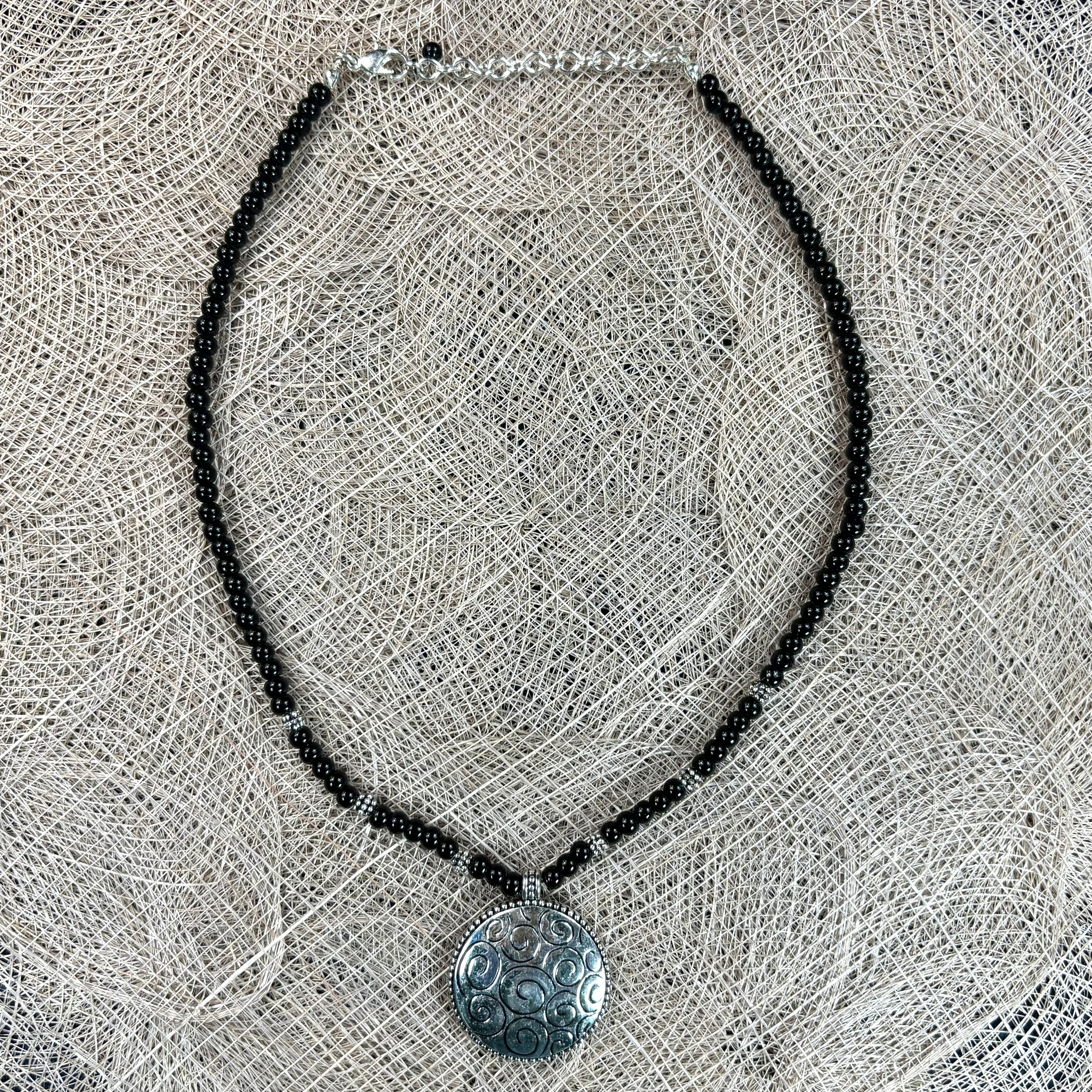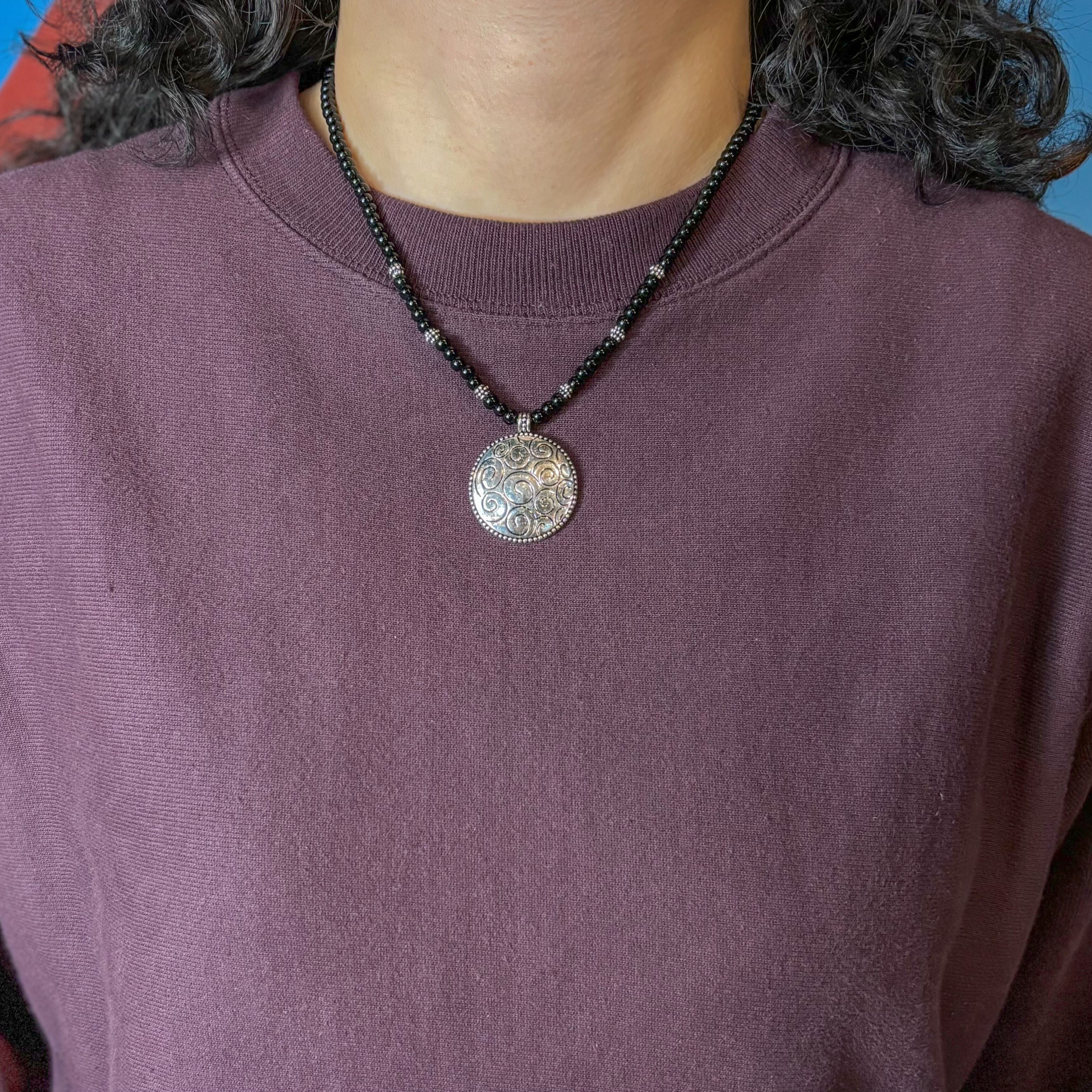 【Unisex】スパイラル シルバー デザイン ブラック ビーズ ネックレス / 古着 アクセサリー 黒