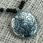 ペンダントトップの渦巻モチーフがとても魅力的なビーズネックレスです。