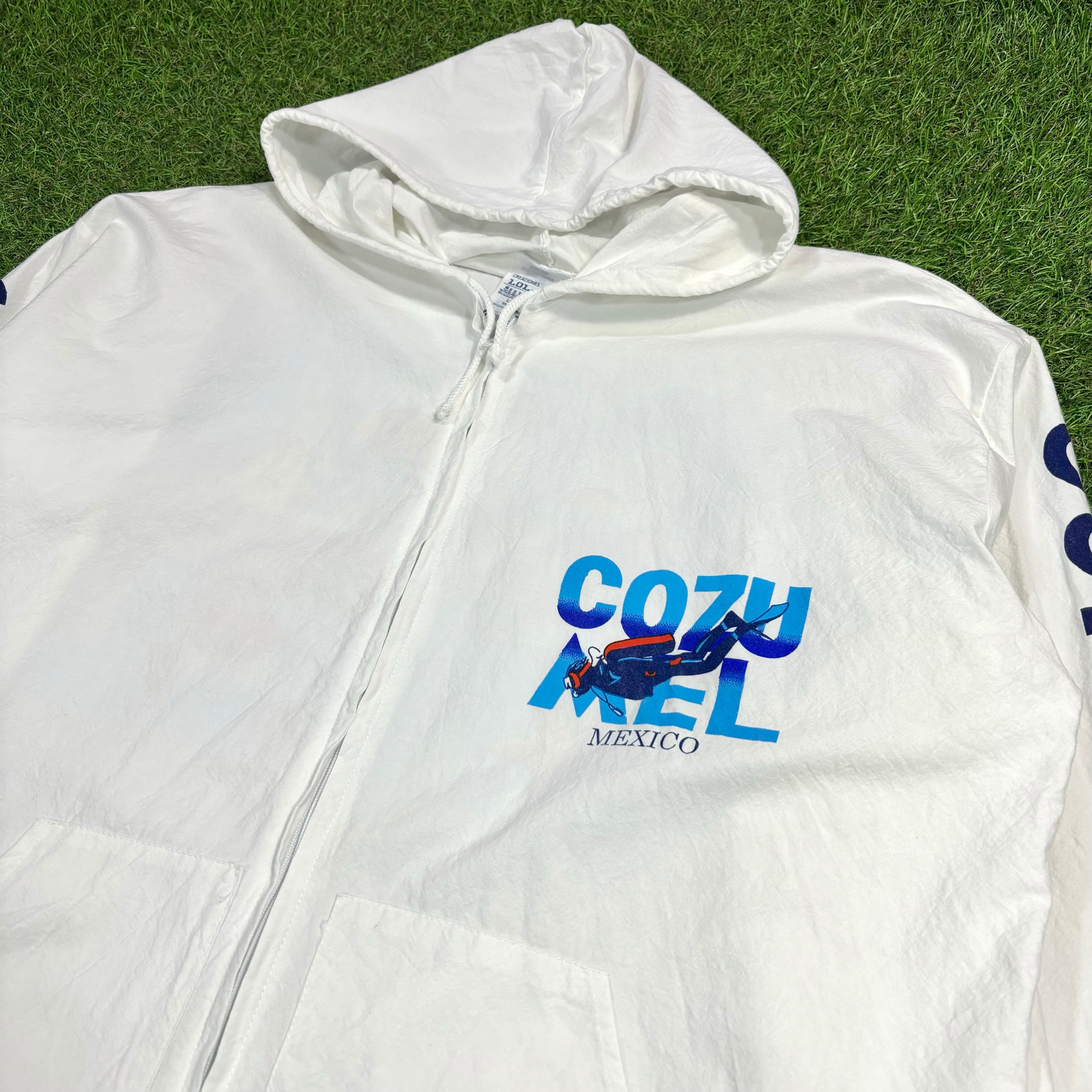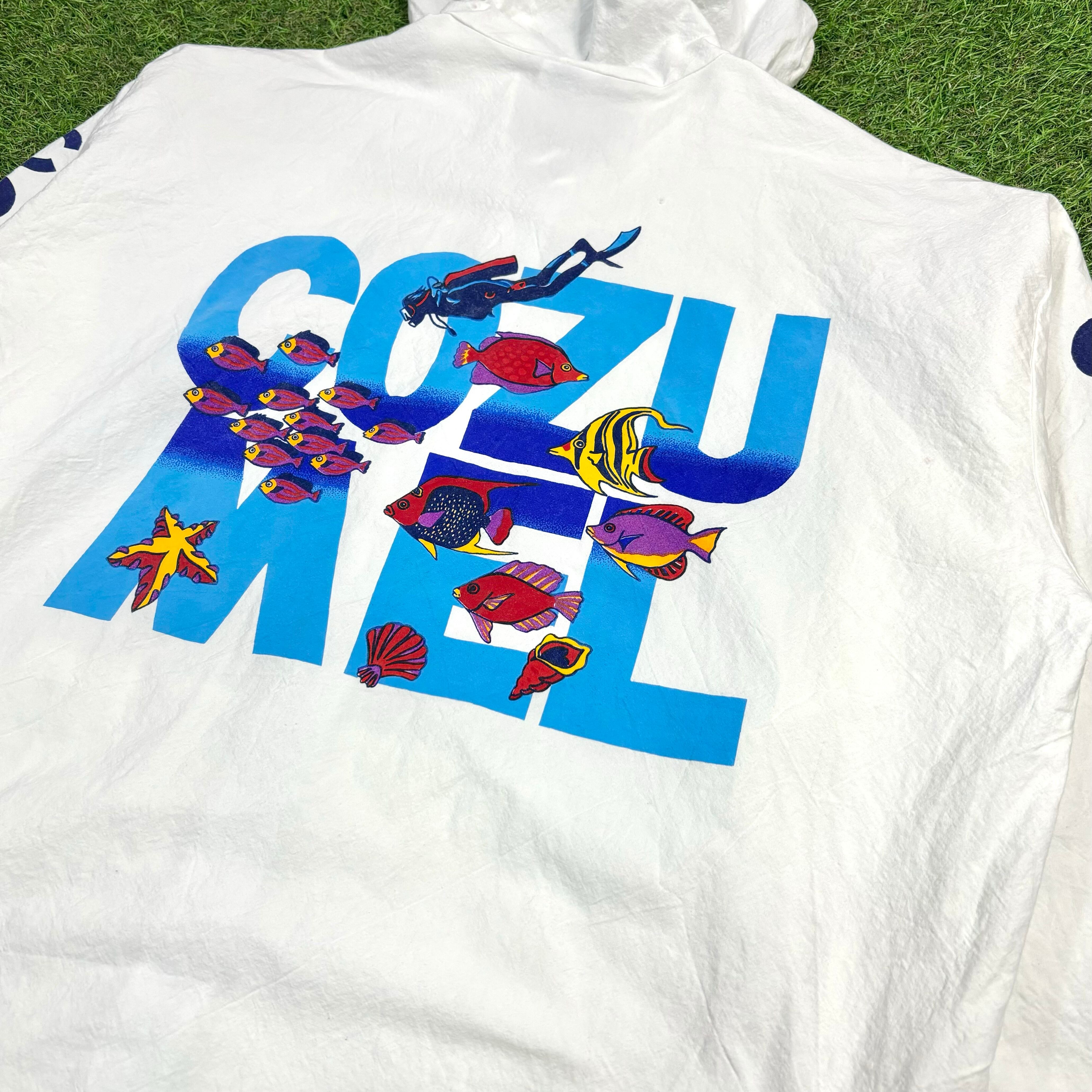 【Men's】 COZUMEL マリン イラスト ビーチ ジャケット / メキシコ 古着 フーディー パーカー 白 ホワイト