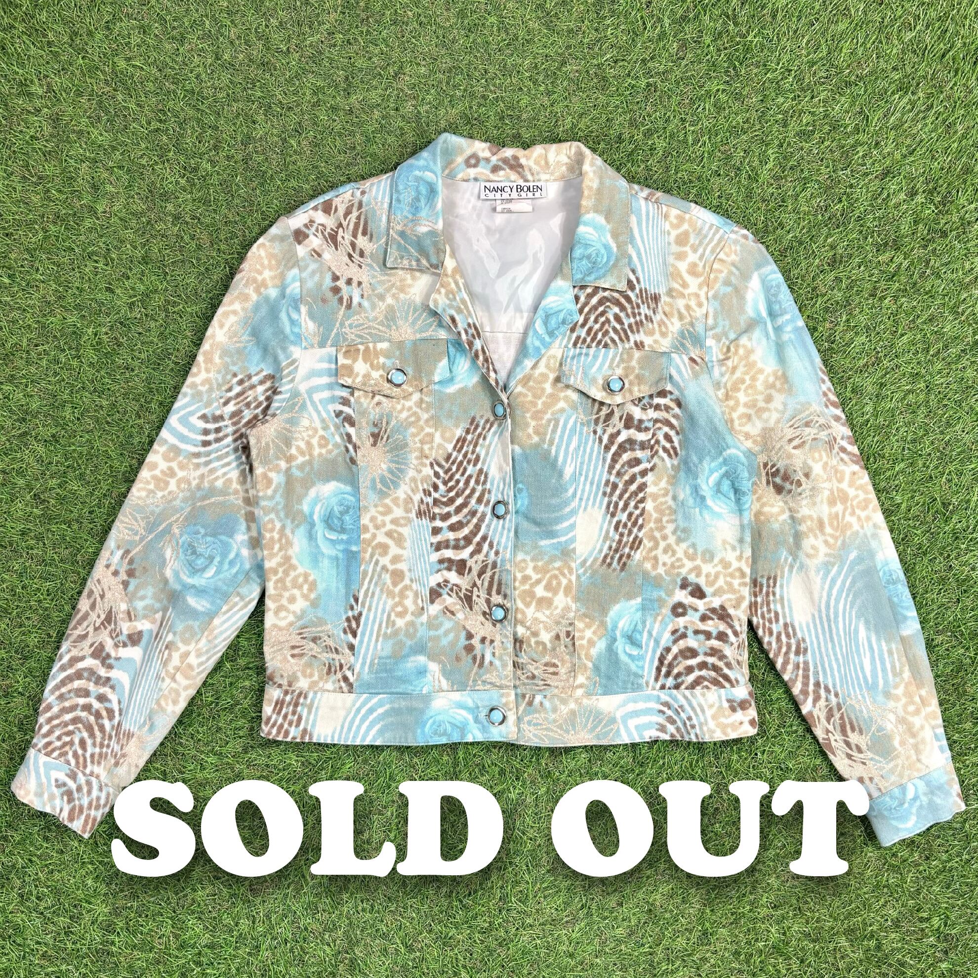 【Lady's】 90s アート柄 開襟 ジャケット / 90年代 古着 総柄 アニマル 花柄 パステル レディース Vintage ヴィンテージ Y2K