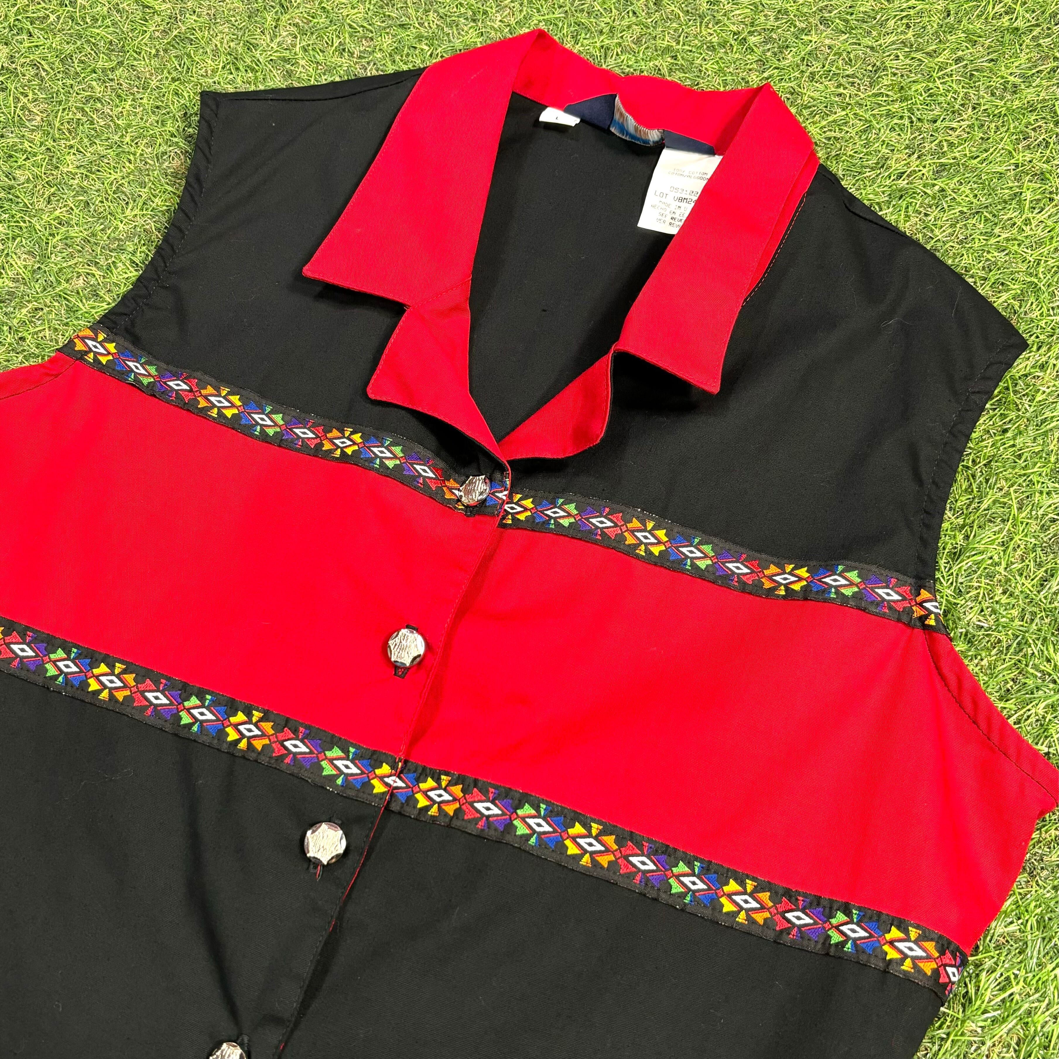 【Lady's】 90s ウエスタン デザイン ノースリーブ シャツ / Made In USA ウェスタン ベスト 開襟 90年代 レディース アメリカ製 古着
