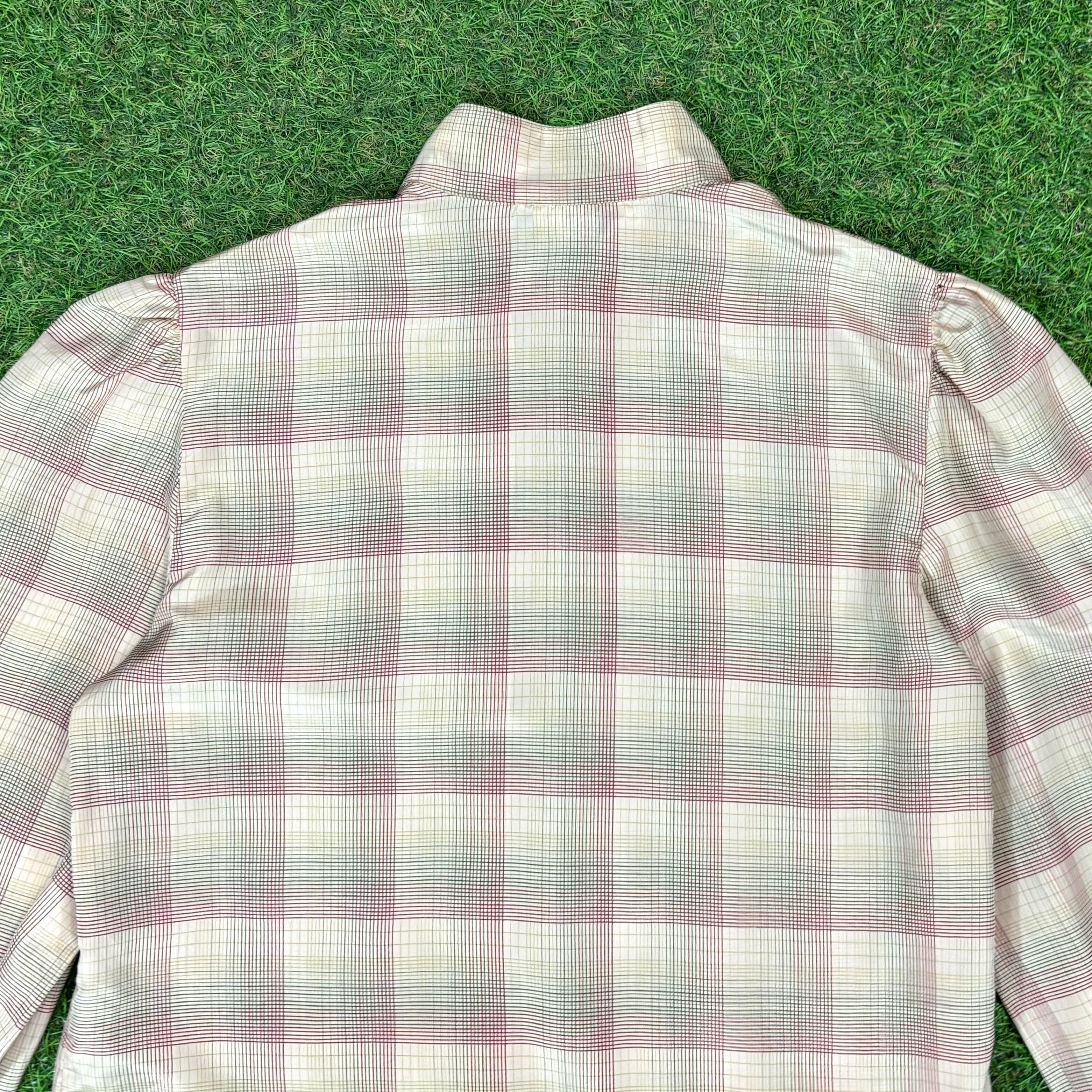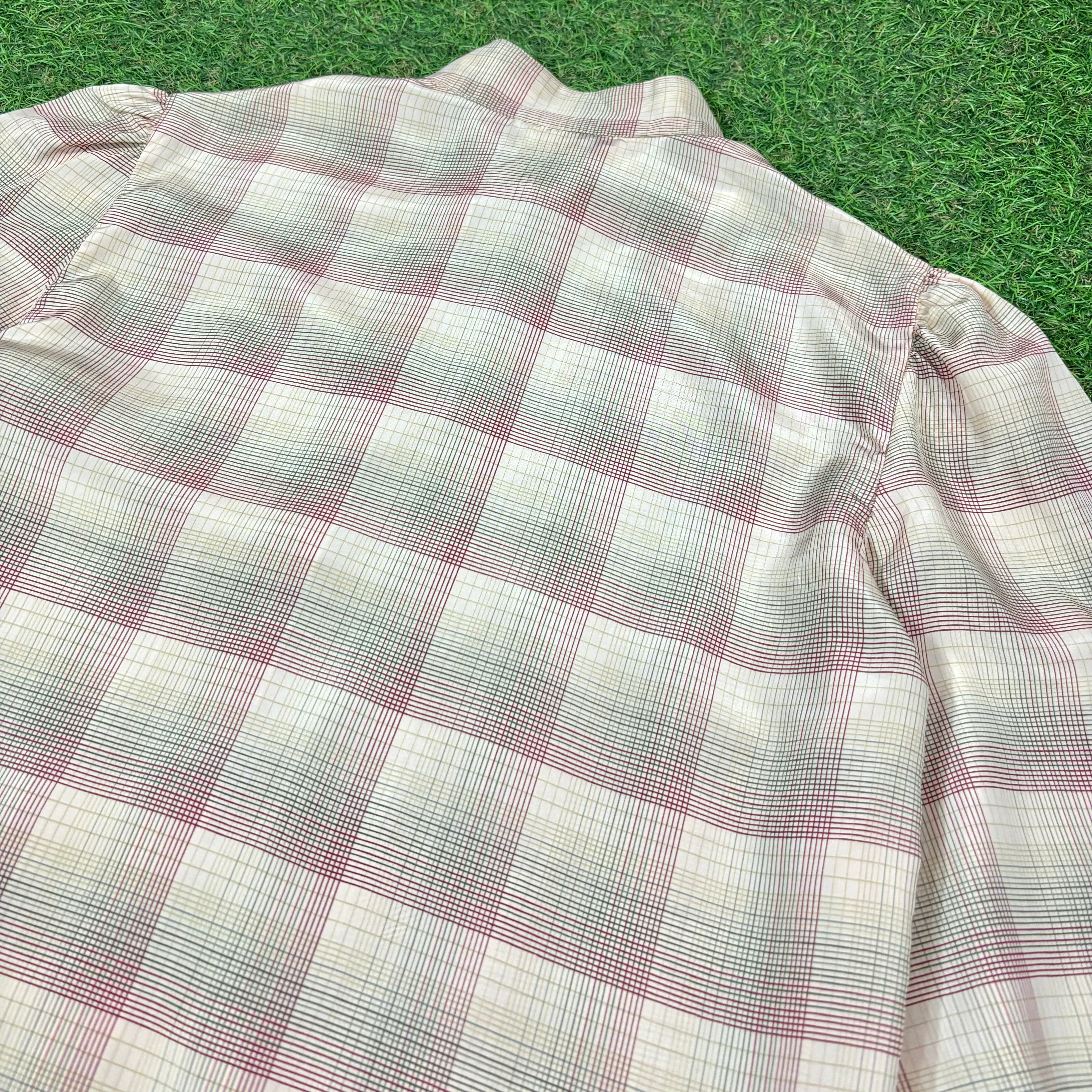 【Lady's】 80s - 90s スタンドカラー フライフロント チェック ポリエステル シャツ / 80年代 90年代 古着 レディース レトロ ポリシャツ 大人古着