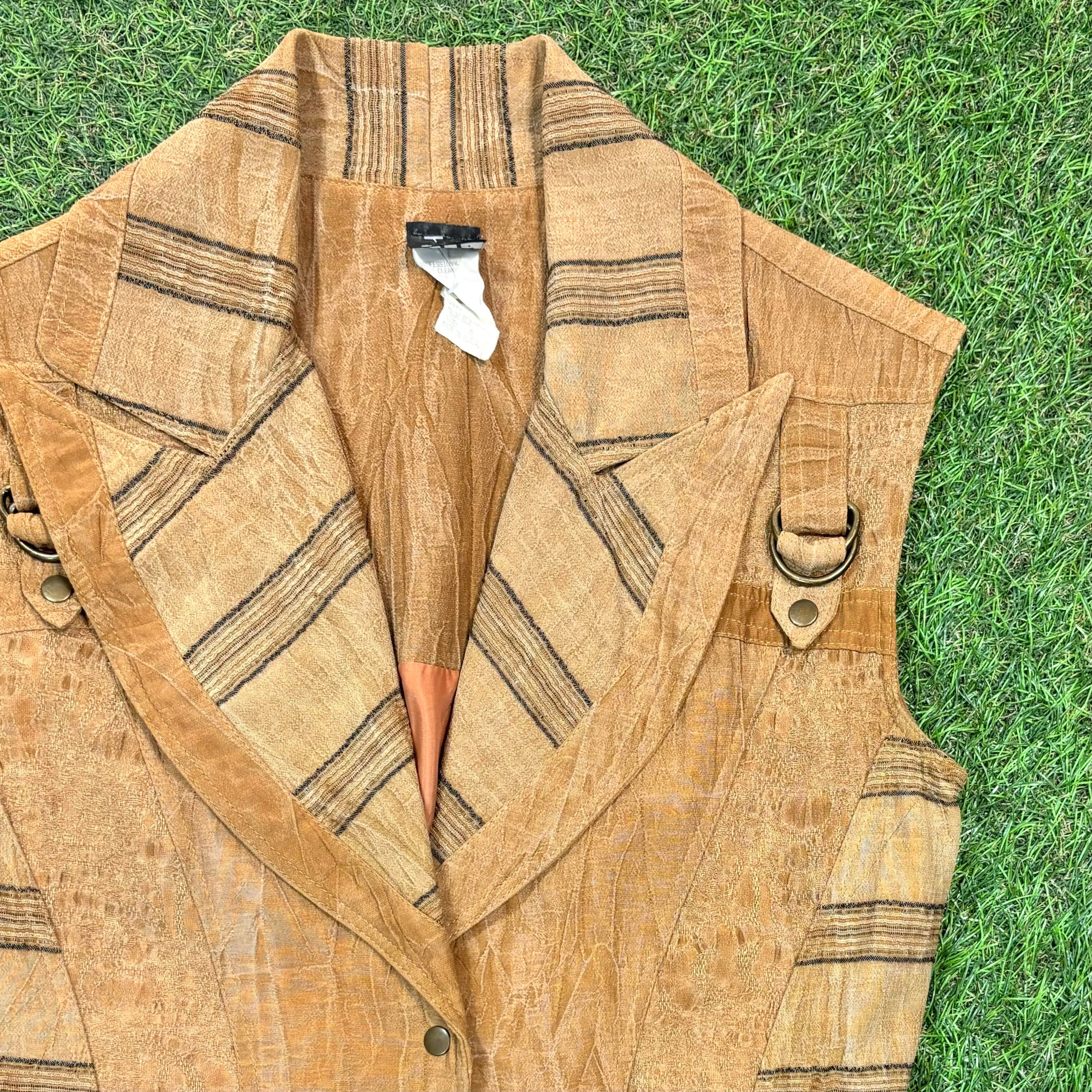 【Lady's】 90s ウエスタン デザイン ベスト / Made In USA アメリカ製 古着 ブラウン ベージュ 茶色 レディース y2k