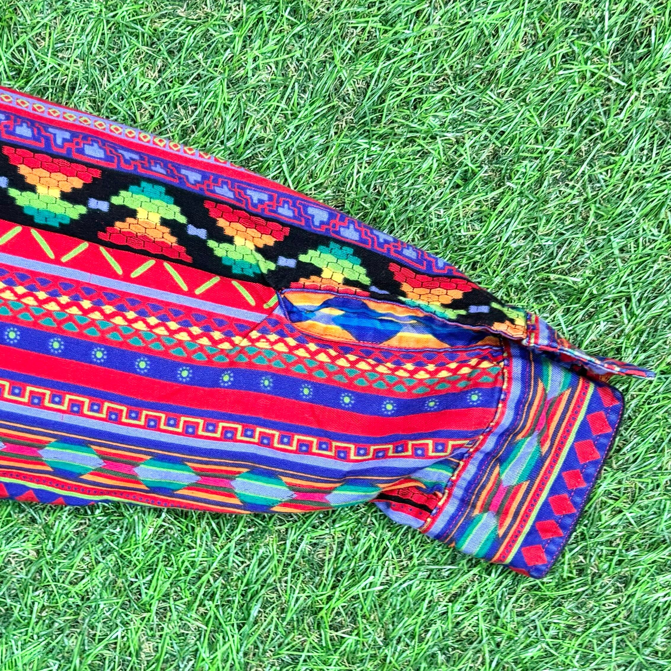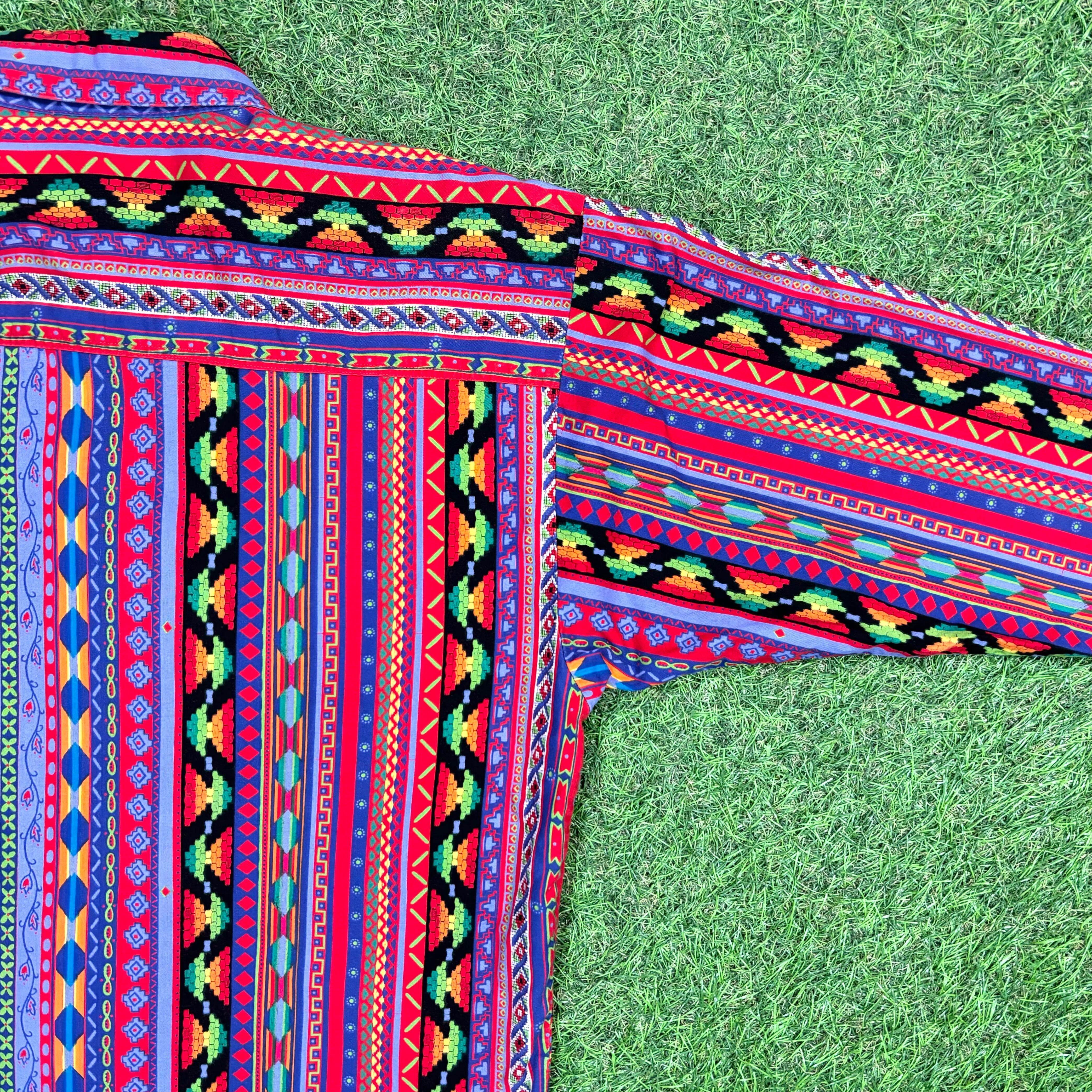 【Lady's】 90s ネイティブ パターン デザイン シャツ / 90年代 エスニック ボヘミアン ヒッピー 総柄 柄シャツ 長袖 レディース