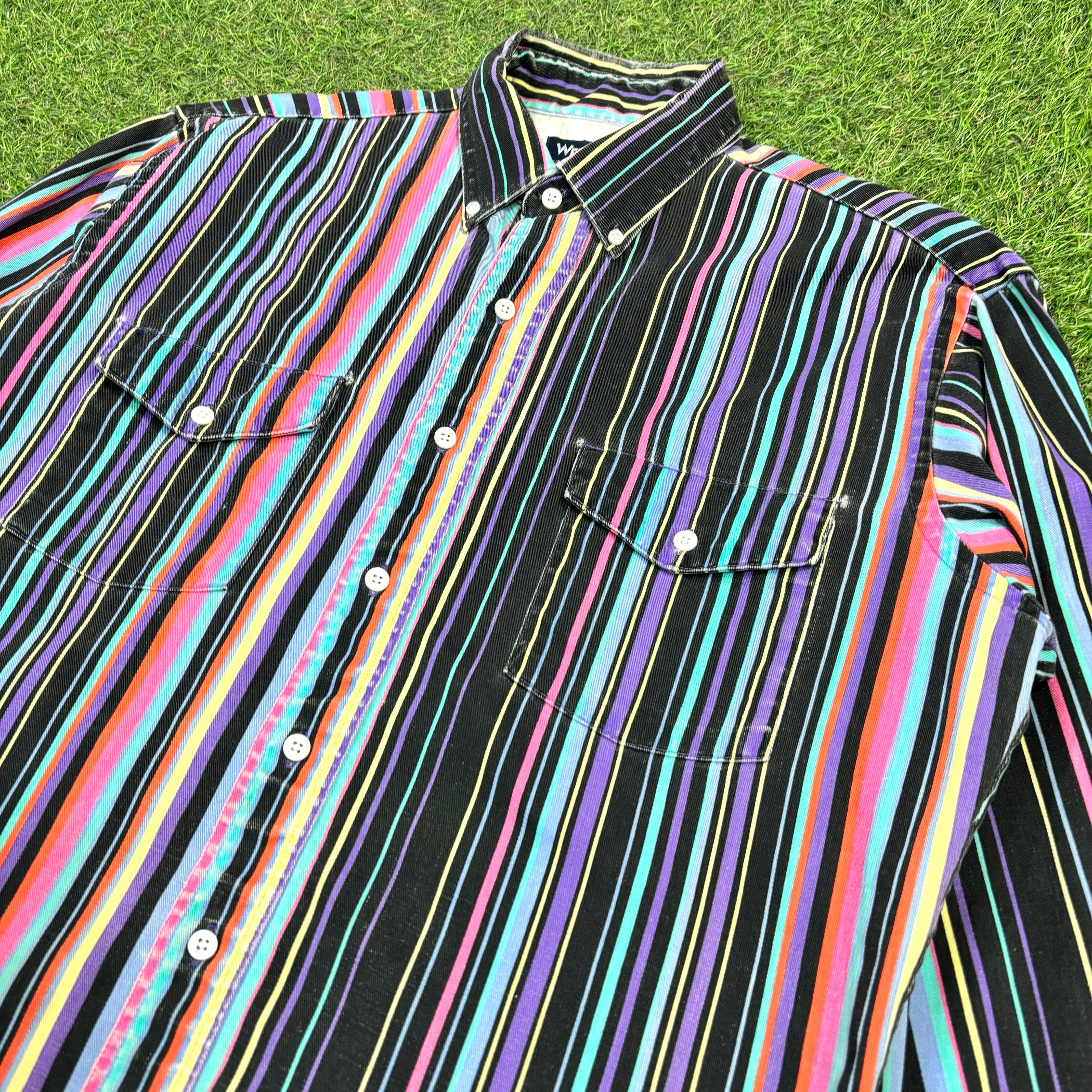 【Men's】 90s Wrangler レインボー ストライプ ボタンダウンシャツ / 90年代 古着 シャツ 長袖 ラングラー カラフル Vintage ヴィンテージ