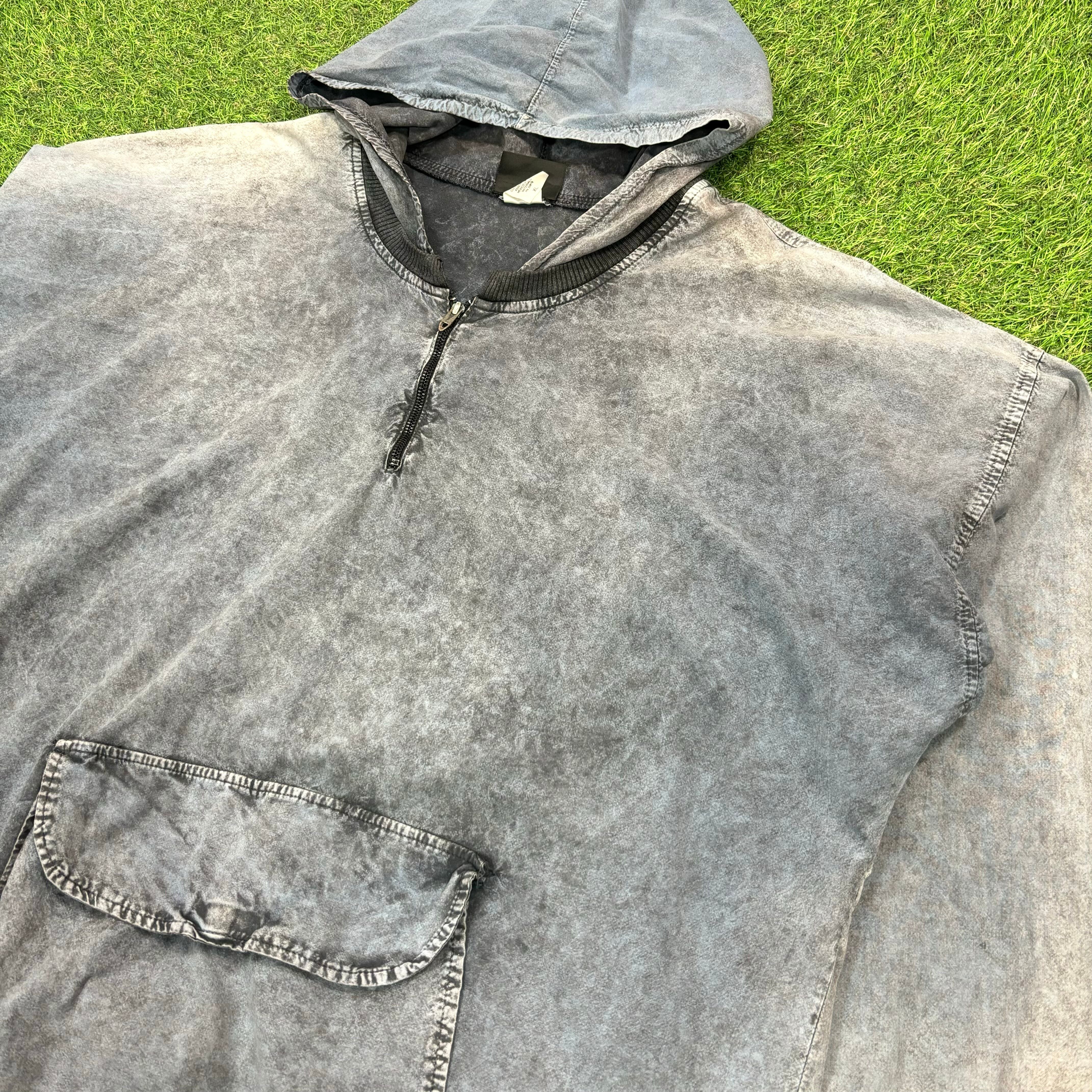 【Men's】 90s まだら デザイン アノラック パーカー / 90年代 古着 フーディー ジャケット ハーフジップ 黒 メンズ Vintage ヴィンテージ