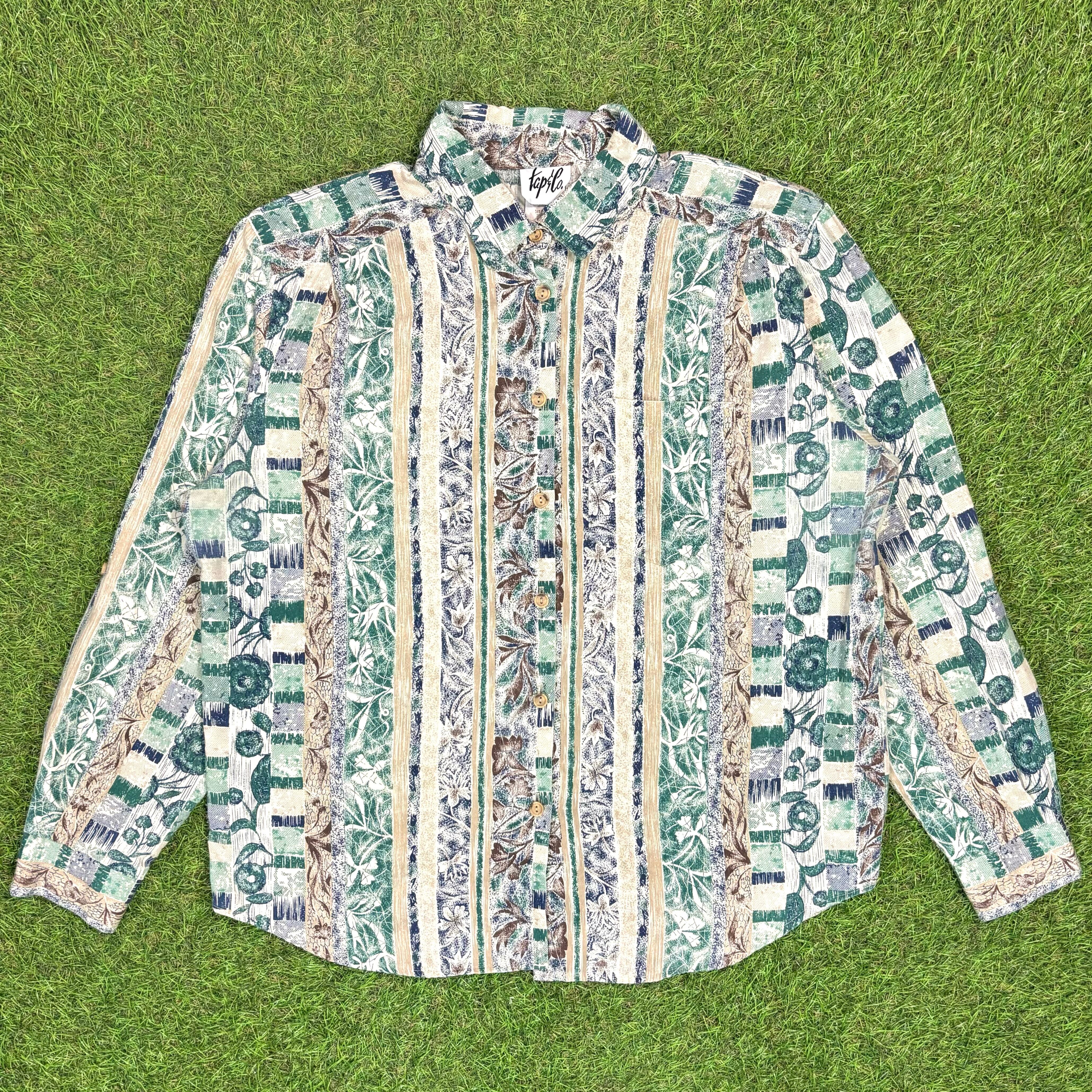 【Lady's】 90s ボタニカル 総柄 長袖 シャツ / Made In USA 90年代 アメリカ製 古着 シャツ レディース 柄シャツ
