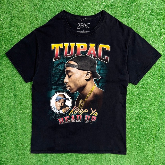 2PAC(Tupac Shakur)のオフィシャルライセンスTシャツです。 フロントには代表曲「Keep Ya Head Up」にちなむメッセージと、2PACのポートレートが大胆にプリントされたデザイン。カラーリングはクラシックなラップTらしいグラフィックで、ブラックボディとのコントラストが効いた一枚です。 コピーライト付きのオフィシャルプリントで、ファングッズやストリートウェアとしても人気の高いアイテム。コットン生地の程よい着古し感も、古着ならではの魅力になっています。 Made In HONDURAS 【着こなし提案】 ワイドデニムやカーゴパンツ、バギーパンツと合わせてストリートスタイルに。 レザージャケットやミリタリージャケット、デニムジャケットとの相性も良く、インナーとしても活躍します。アクセサリーやキャップ、チェーンネックレスを合わせれば90’sヒップホップ感のあるスタイリングに仕上がります。 着用画像のご希望やご質問は、画面下の「ショップに質問する」ボタンよりどうぞ◎ ---------- <SIZE> 肩幅50cm / 身幅53cm / 袖丈19cm / 袖口19cm / 着丈71cm Lサイズ <MATERIAL> 100%コットン <CONDITION> 点々とうすいシミあり (全て画像参照) 着用に支障のあるダメージはございません。 ※一点ものです。気になる方はお早めに。 「ショップに質問する」より最長1週間のお取り置きも可能です。 ---------- 【配送方法について】 レターパック(全国一律600円)でお届け。 ※3着以上ご購入の方は、商品オプションの「3着以上購入の方はこちら」をご選択ください。 ---------- 【クーポン情報】 初回限定500円OFFクーポン適用可能! ご購入時にクーポンコード【PEACEFUL500】を入力してください。 【ショップフォローのご案内】 Pay IDアプリでフォローいただくと、新作やキャンペーンを最速でお届けします。 ▶︎ フォローはこちら https://thebase.com/to_app?s=shop&shop_id=pcefulvalley-base-ec&follow=truehttps://thebase.com/to_app?s=shop&shop_id=pcefulvalley-base-ec&follow=true ---------- 【ご購入前にご確認ください】 USEDのため小さなシミ・ほつれ等がある場合がございます。 色味は実物と異なる場合がございます。サイズ計測は多少の誤差があります。 店頭販売と在庫を共有しているため、売切れの場合があります。 返品・交換は承っておりません。 ご質問は「ショップに質問する」またはInstagram DMよりお気軽にどうぞ。