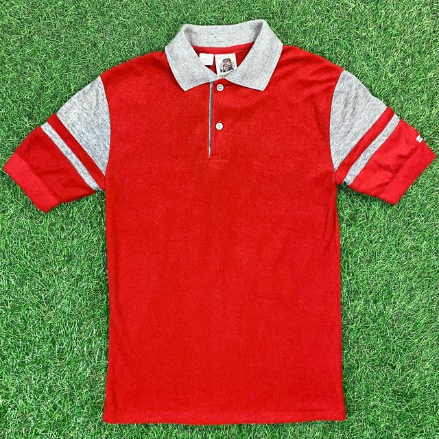 【Unisex】70s レッド パイル ポロシャツ / Vintage ヴィンテージ 古着 半袖