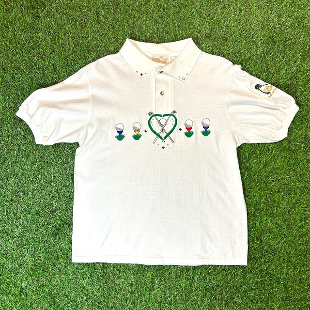 【Lady's】 90s ゴルフ 刺繍 ワッペン ポロシャツ / Made In USA 古着 Vintage ヴィンテージ アメリカ製 白 ホワイト カジュアル スポーティ