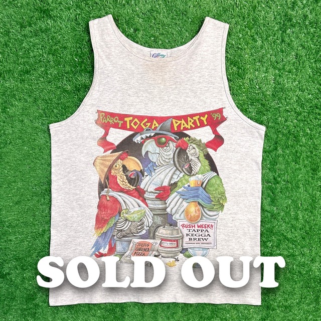 【Men's】 90s オウム イラスト タンクトップ / アメリカ製 USA製 グレー 夏 sタンクトップ 532